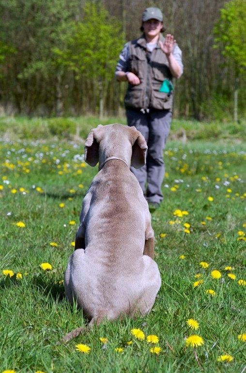 Leren van de basis commando’s: Volgen, zitten, blijven, komen, en het STOP commando.